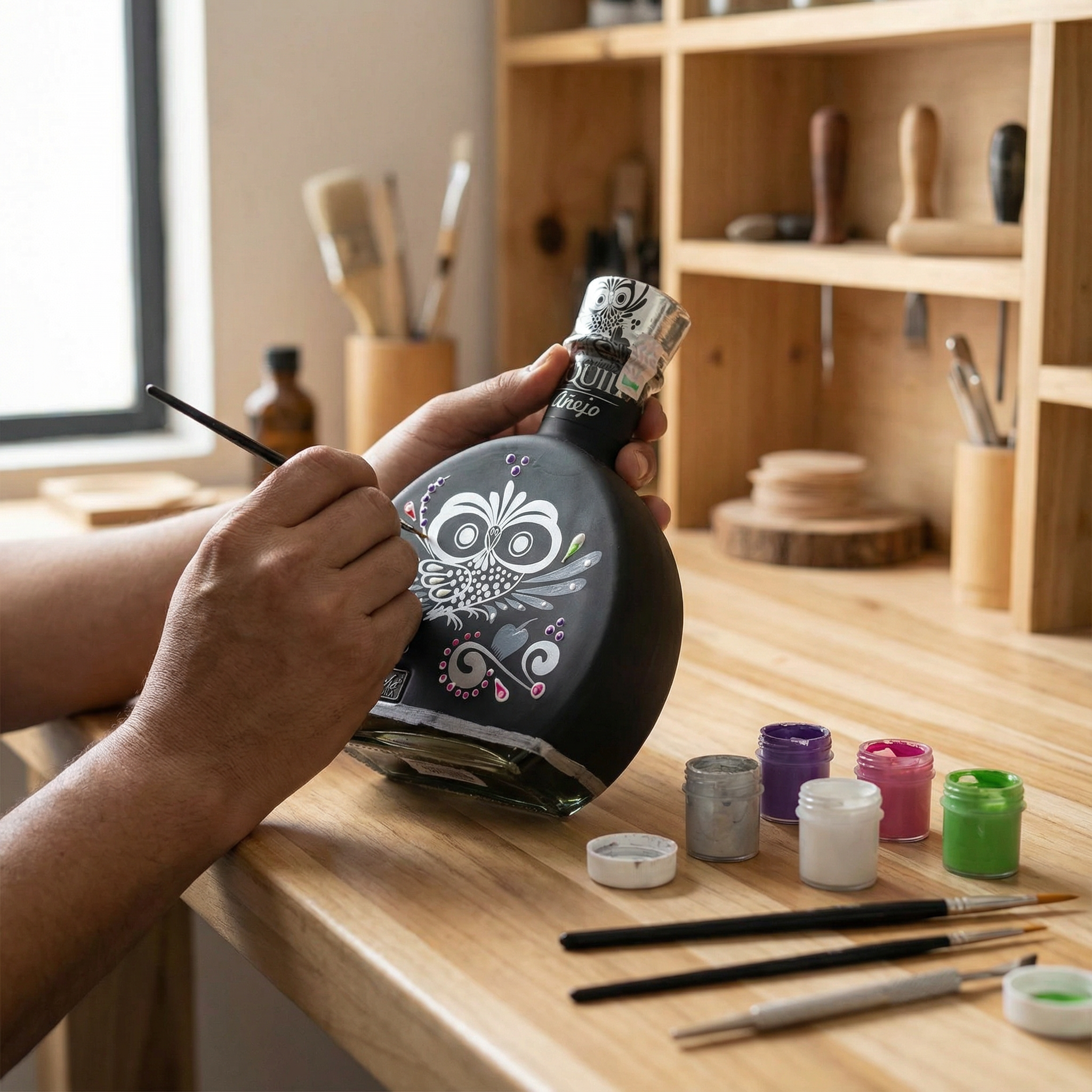 Desde el inicio, cada botella se pinta a mano, una por una.